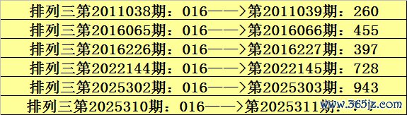 上期回归:陈列三第2025310期开奖:016,奖号类型为:组六。