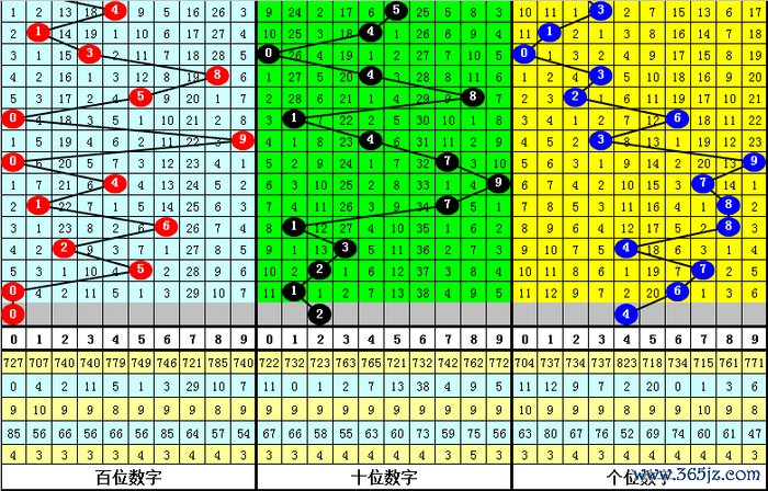 另外组选鉴识中,号码大小比为9:6,小 号出现相对较少;号码奇偶比为7:8,奇偶号码出现比例基本抓平;号码012路为6:4:5,基本抓平。且每期奖号皆与最近5期奖号有疏通的号码。(统计见下表)